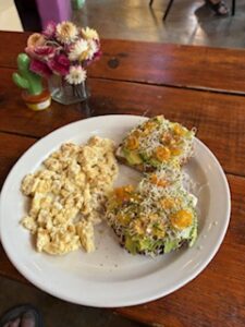 • Sourdough avocado toast: thick, nutty, and perfectly ripe.