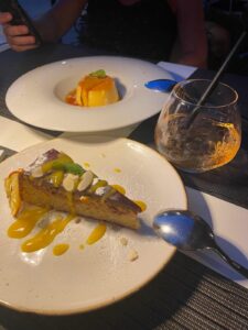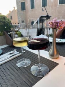 Our meal was perfectly paired with outstanding local wines: a crisp Pošip white and a bold Plavac Mali red, both from Smokvica. To finish, we indulged in traditional desserts—Dubrovacka torta (almond and orange cake) and paradižot (a light custard with egg whites and ladyfinger biscuits)—accompanied by a smooth Godfather digestif (Scotch and Amaretto).