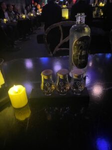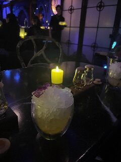 From the moment you arrive, the space feels like a secret world — candlelit pathways, lava-like walls, glowing runes, and even a hidden waterfall. The lighting is intimate but theatrical, casting shadows that make every corner feel part of a strange, enchanted tale. As you sip your way through the evening, Théron (the owner) becomes your storyteller-guide, weaving narratives about how the spirits came to be — their inspirations, the craft, and even the lore that shaped them.