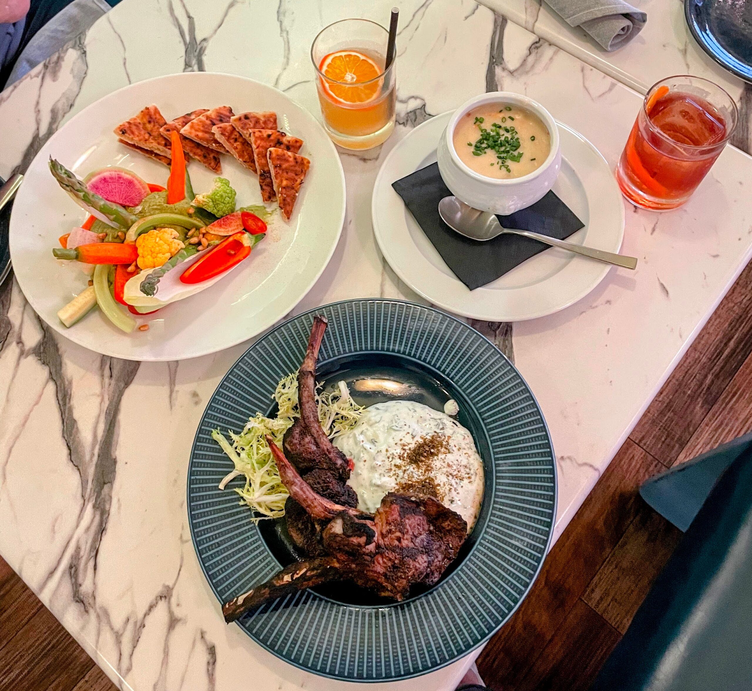 But the standout starters were the blackened lamb lollipops—absolutely incredible. Perfectly cooked, full of flavor, and paired with that tzatziki and roasted peppers… easily one of the highlights of the night.