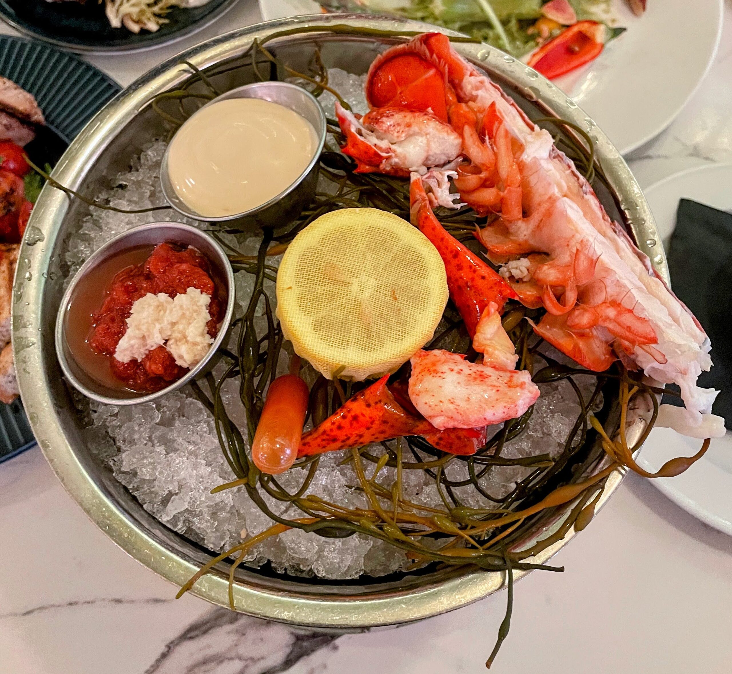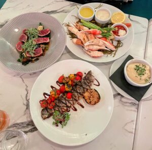 The avocado hummus was unexpectedly addictive—creamy, rich, and paired perfectly with the grilled pita and fresh vegetables. The king crab legs and Maine lobster cocktail were incredibly fresh and indulgent, the kind of dishes that remind you why simple seafood, when done right, is unbeatable.