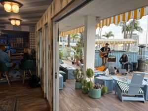 From the second we arrived, with the marina stretching out in front of us and that soft coastal light reflecting on the water, everything just felt easy—elevated without trying too hard. The atmosphere is intimate but still vibrant, the kind of place where you can settle in for hours without noticing time passing. Between the outdoor warmth, the flicker of the firepit, and the gentle buzz of conversation, it creates a perfect balance of energy and calm.