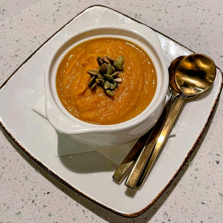 The butternut squash bisque that followed was velvety and rich, perfect for warming up and clearing the palate before the heartier courses. It’s one of those soups that feels like a hug in a bowl.