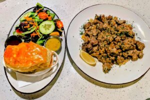 We kicked things off with the poke nachos and cauliflower appetizers — an album-worthy opener that set an upbeat tone for the whole meal. The nachos balanced fresh ahi with crisp chips and flavorful toppings, while the cauliflower offered a satisfying, playful take on a classic starter.